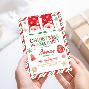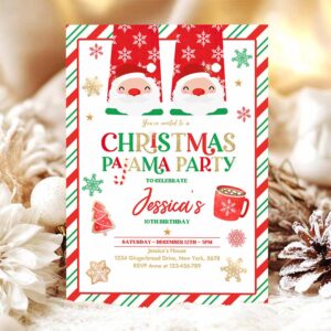 Christmas Pajama Birthday Party Invitation Red And Gold Christmas Slumber Party Invitation Holiday Pajama Party