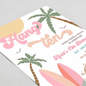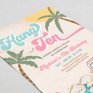 10th Pink Mint Girl 10th Surfing Birthday Invitation, Girl Surf Van Surfboard Beach Party Invitation