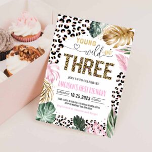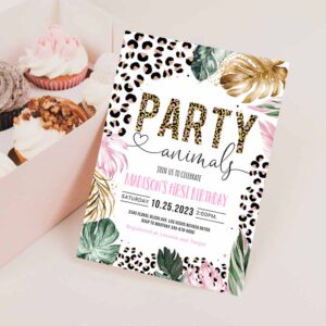Flamingo Birthday Party Invitation Template,Tropical Birthday Watercolor Invite, 1st Birthday Summer