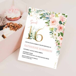 Pumpkin Birthday Invitation, First Birthday Floral Pink and gold Girl White Pumpkin, 1st Fall Autumn