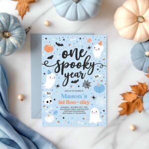 One Spooky Boo-y Cute Blue Ghost 1st Party Invitation Cute Boy Ghost 1st Birthday Spooktacular Party