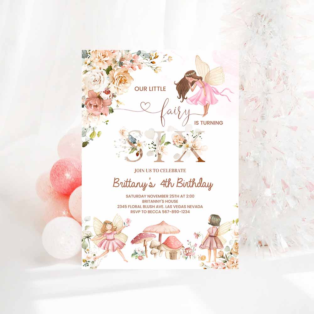 6th Fairy Birthday Invitation Wildflower Garden Fairy Floral 6th Birthday Invite Butterfly Magical