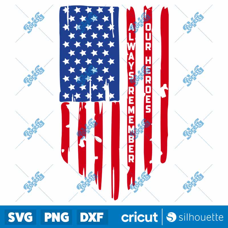 Always Remember Our Heroes SVG, Memorial Day Color Flag SVG