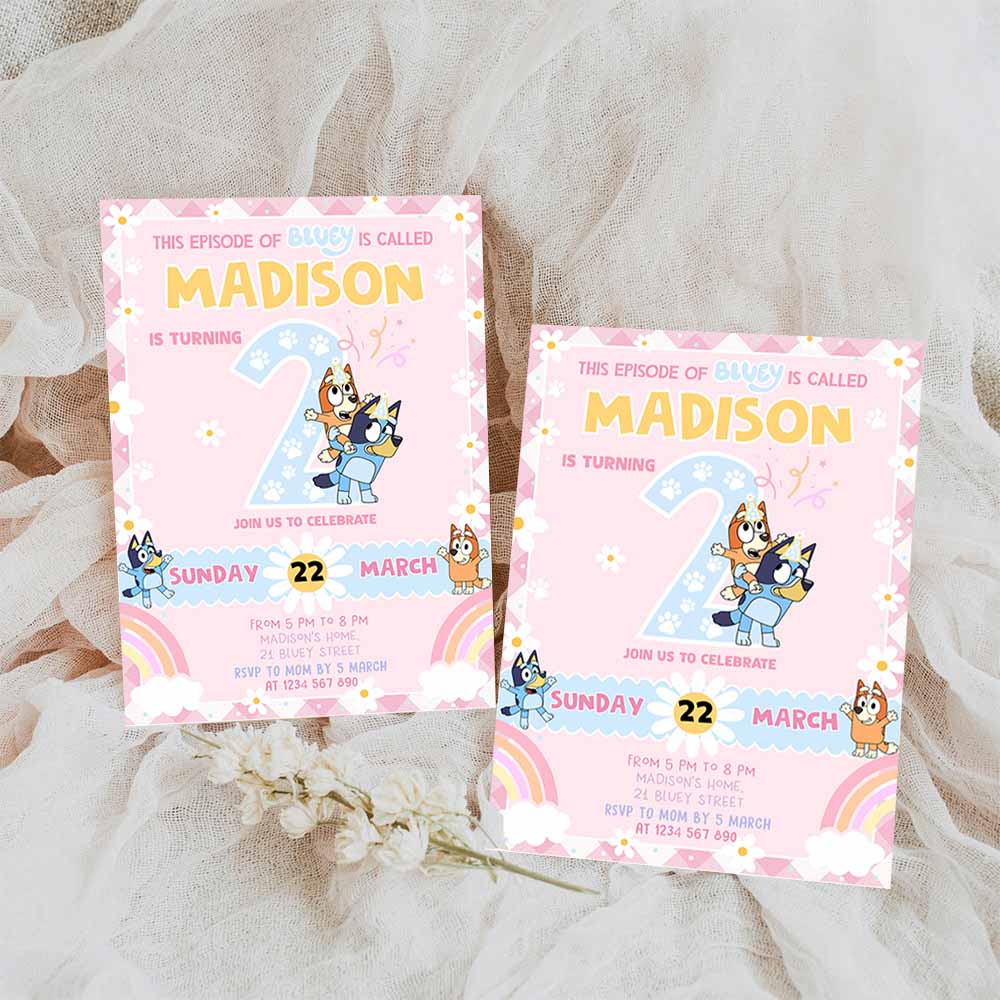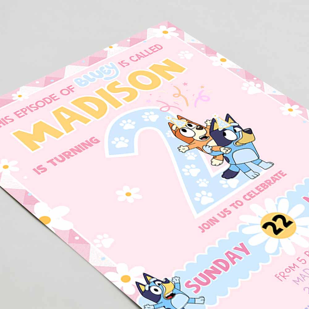 Baby Bluey Girl Party Birthday Invitation, 2nd Bluey Party Invitation, Party Girl Invite