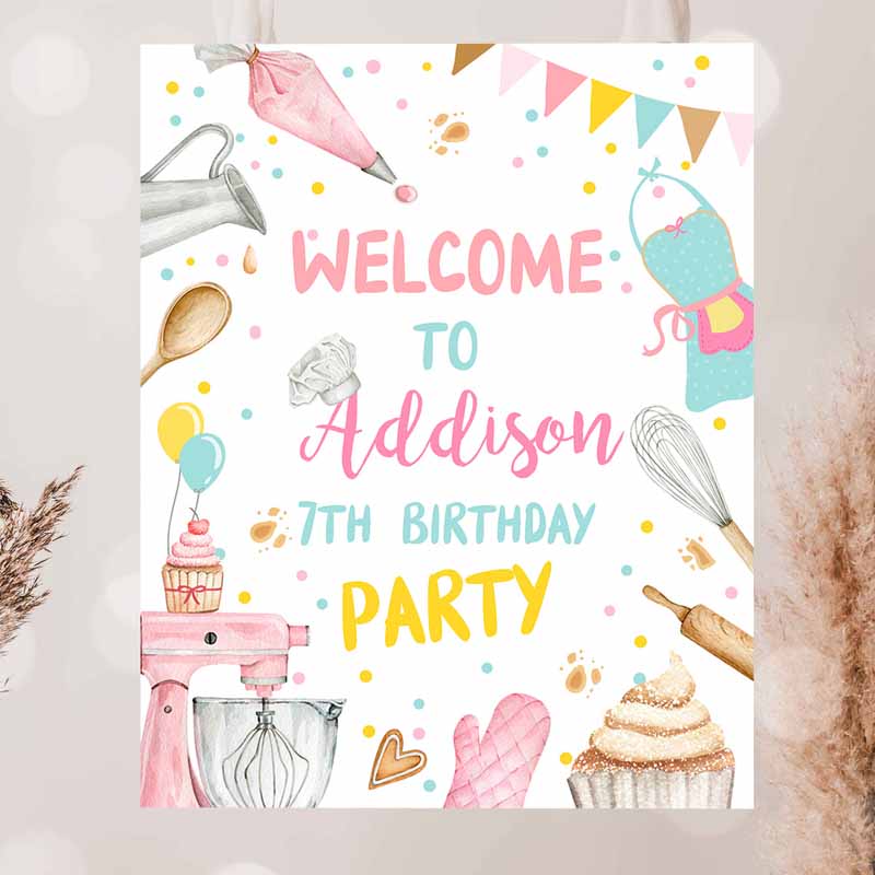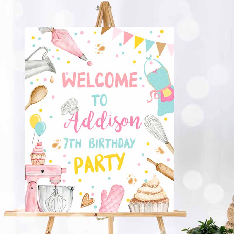 Baking Kids Birthday Party, Cooking Kids Birthday, Welcome Pink Girl Little Chef Cupcake Decorating