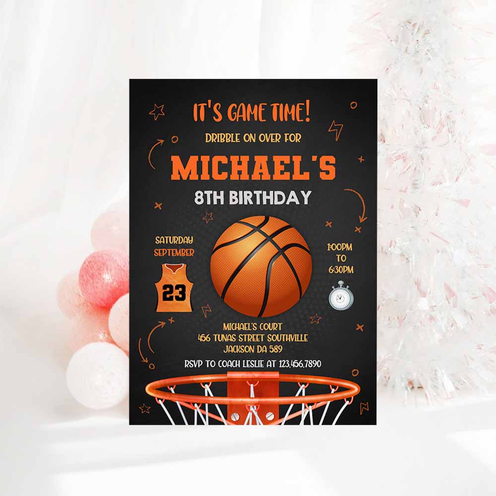 Basketball Birthday Invitation Template, Basketball Birthday Invitation, Basketball invitation