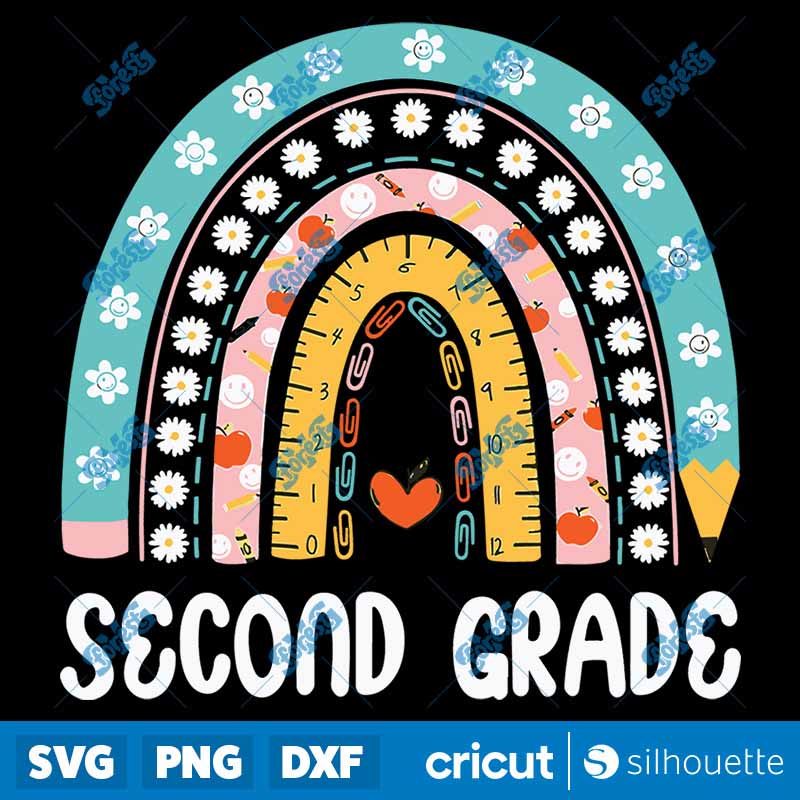 Boho Rainbow Second Grade Student Teacher Back To School SVG