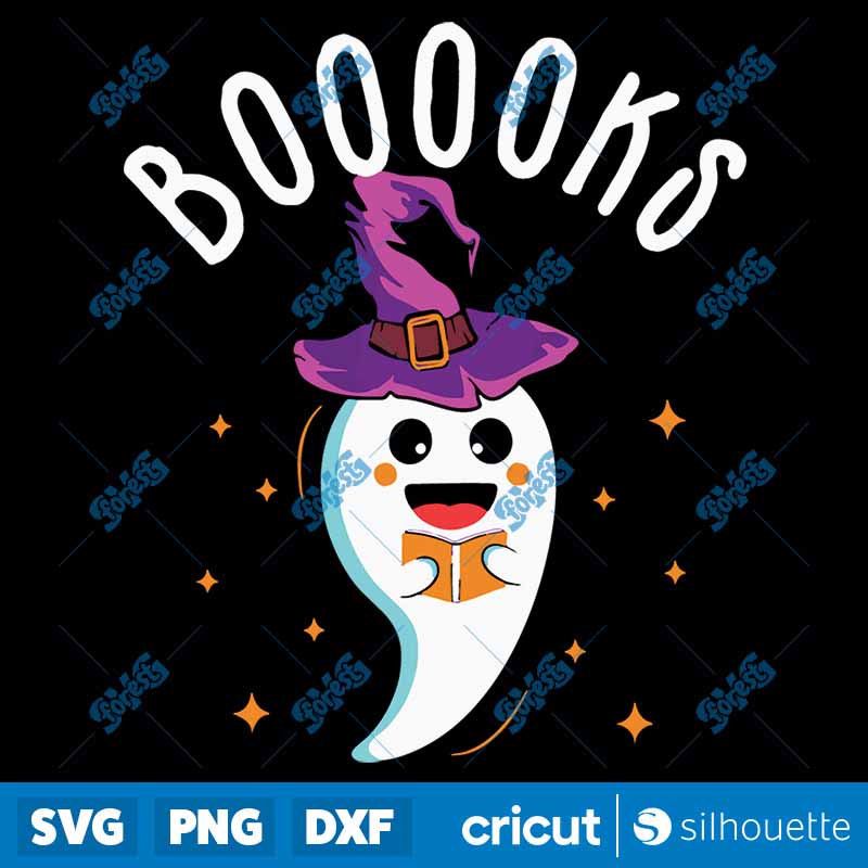 Booooks Halloween Cute Ghost Book Teacher Reading Retro SVG