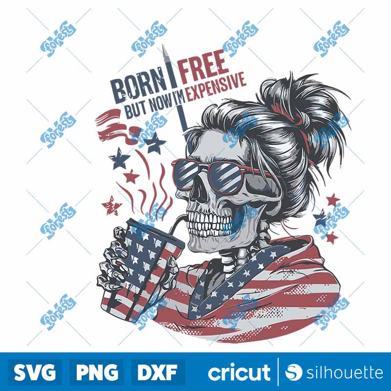 Born Free But Now IM Expensive Patriotic Skull SVG