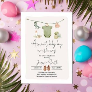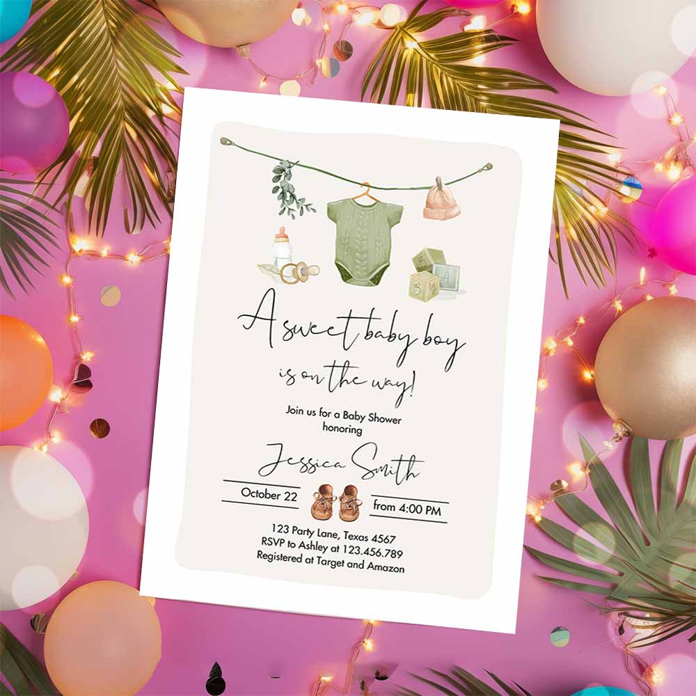 Boy Baby Shower Invitation, Boho Baby Shower Invitation, Coed Shower Baby Clothes Rustic