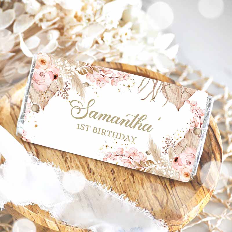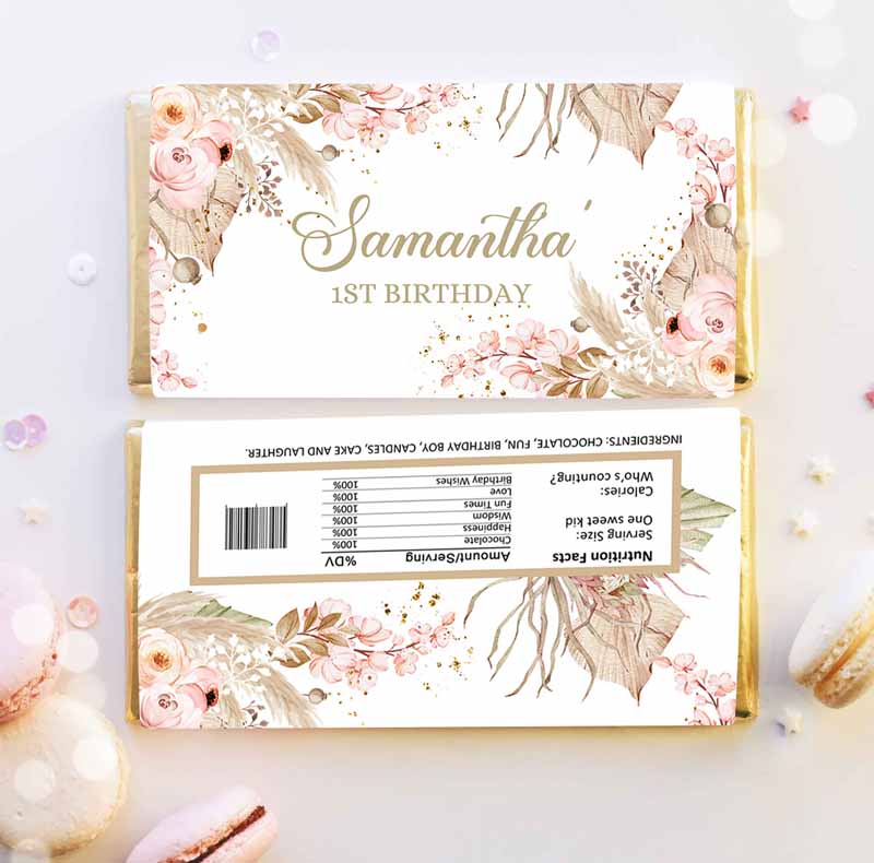 Candy Bar Wrapper Pampas Grass Kids Birthday, Candy Bar Wrapper Boho Kids Birthday, Favors Party, Girl Thank You