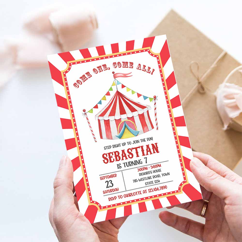 Carnival Birthday Invitation, Circus Birthday Invitation, Carnival Invitation