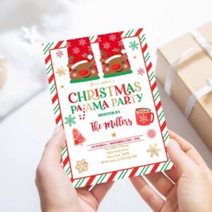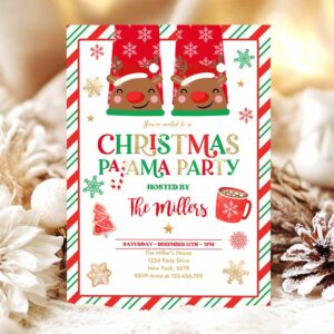 Christmas Pajama Invitation Red And Gold Holiday Pajama Party Invitation Holiday Christmas Pajama Party