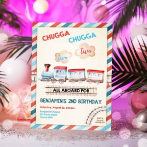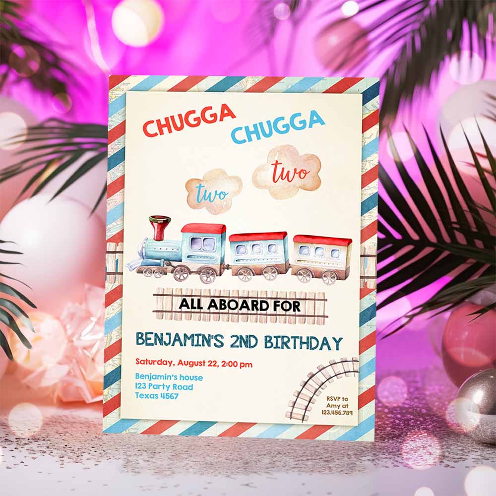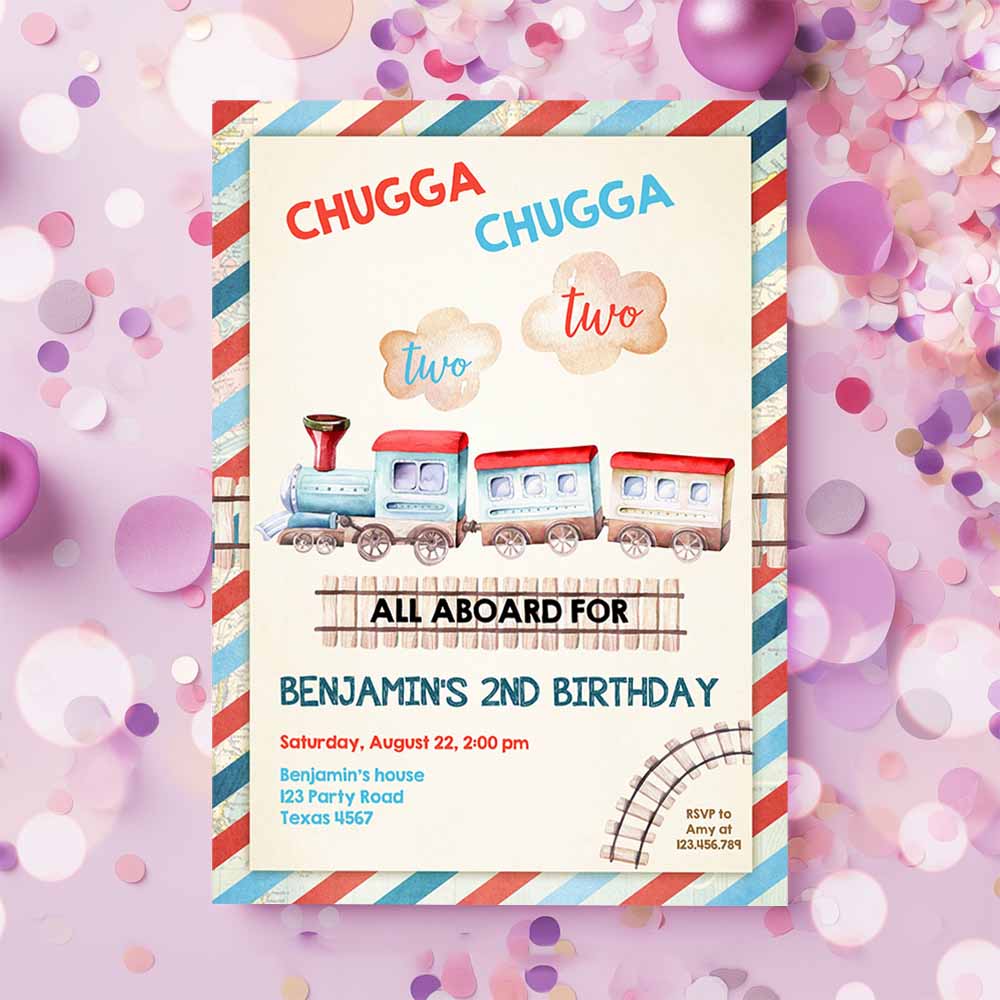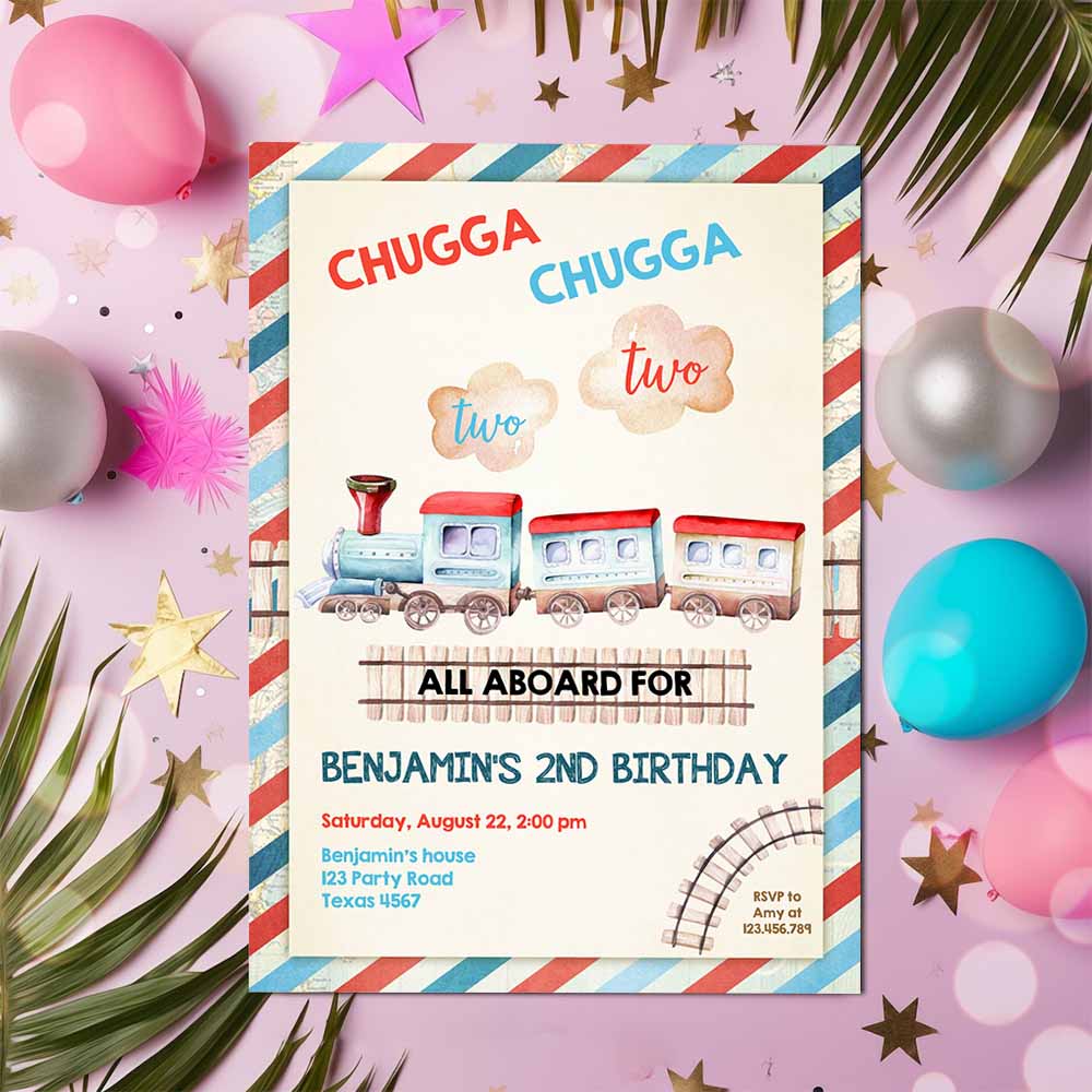 Chugga Chugga Two Two Train Birthday Invitation, Vintage Choo Choo Train Party