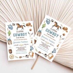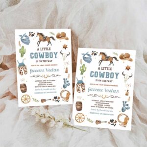 Cowboy Baby Shower Invitation, Blue Little Cowboy Invite Wild West Theme Ranch It’s a Boy