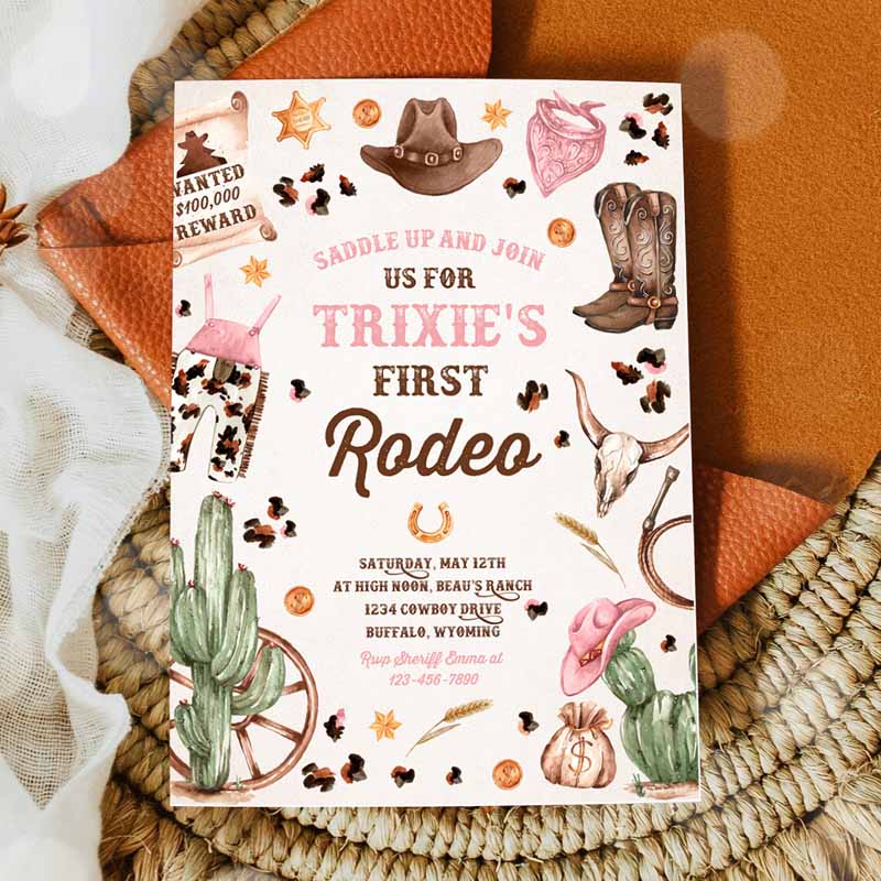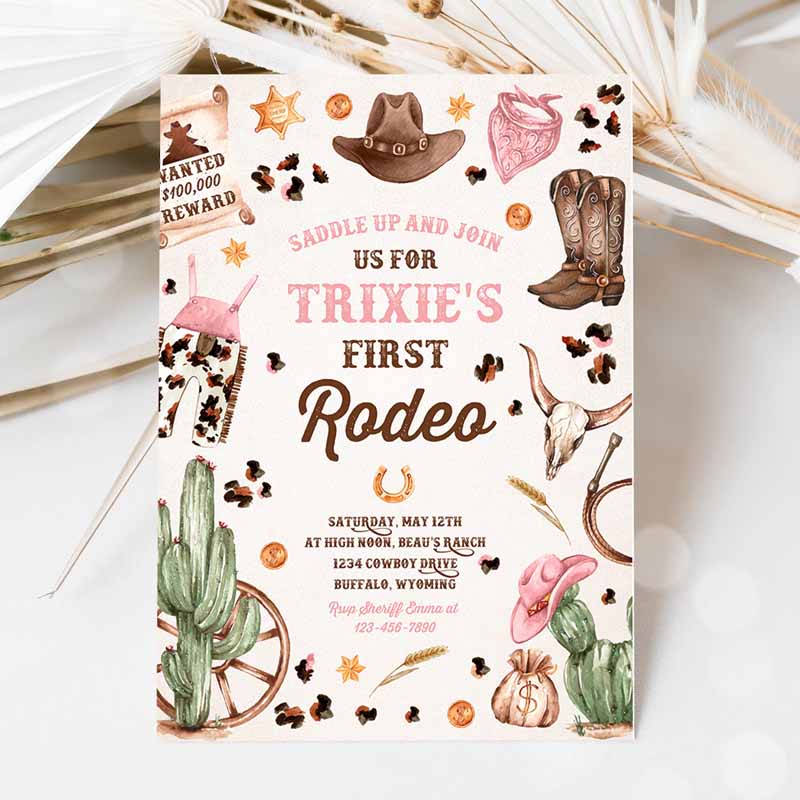 Cowgirl Kids Birthday Party, Girl Invitation, Wild West Cowgirl Rodeo Kids Birthday Party, Southwestern Ranch Kids Birthday Party