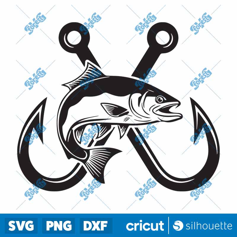 Crossed Fish Hooks SVG, Bass Fishing SVG, Fishing Hook SVG