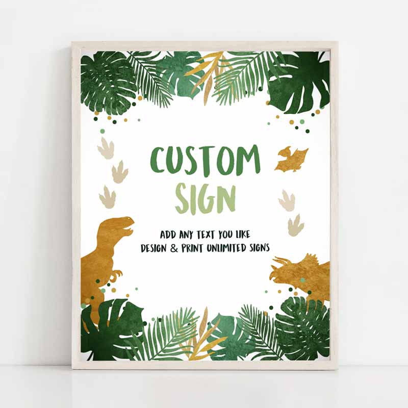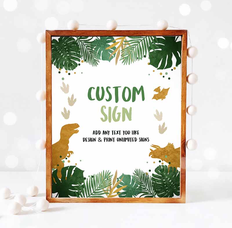 Dinosaurs Dino Sign, Decor Animals Table Sign, Green Gold Boy T-Rex Party