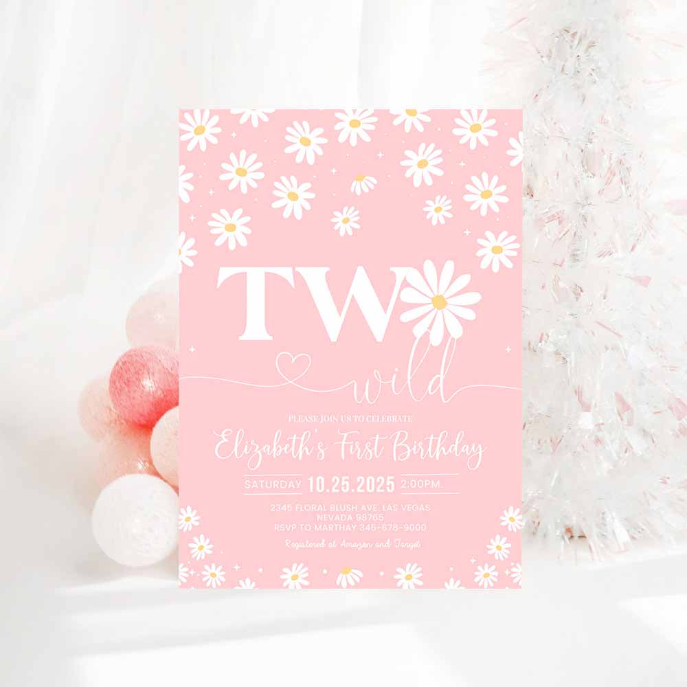 Daisy Birthday Party Invitation Boho Daisy Wild One 2nd Birthday Bohemian Floral Groovy Party