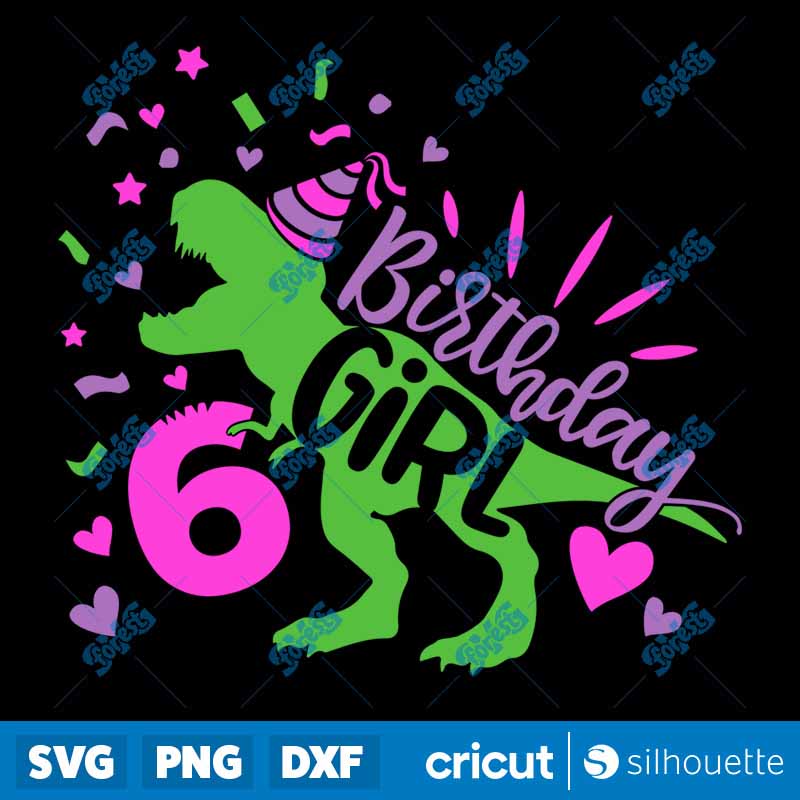 Dinosaur Girl Birthday 6 SVG, T Rex Girl’s Sixth Birthday cut file