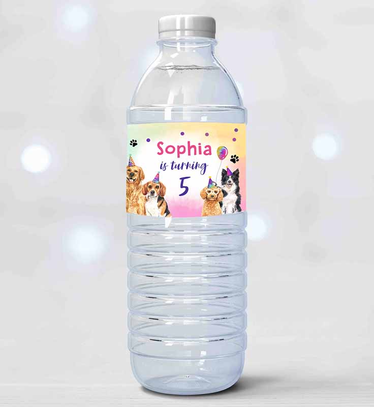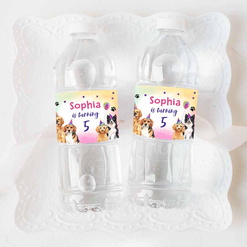 Dog Water Bottle Labels Dog Kids Birthday, Puppy Party, Doggy Pet Vet Pawty Kids Birthday, Decor Girl Bottle Wrap