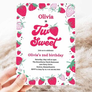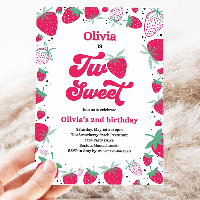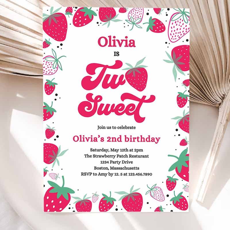 Strawberry Two Sweet Kids Birthday Invitation, Two Sweet Strawberry Kids Birthday, Summer Berries Party Invitation