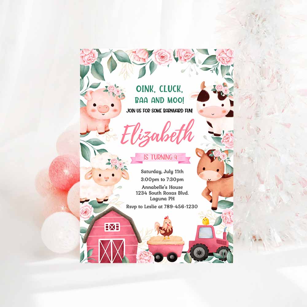Farm Birthday Invitation Template, Farm Animals Birthday Invitation, Farm , Barnyard Animal Invitation, Farm Invitation