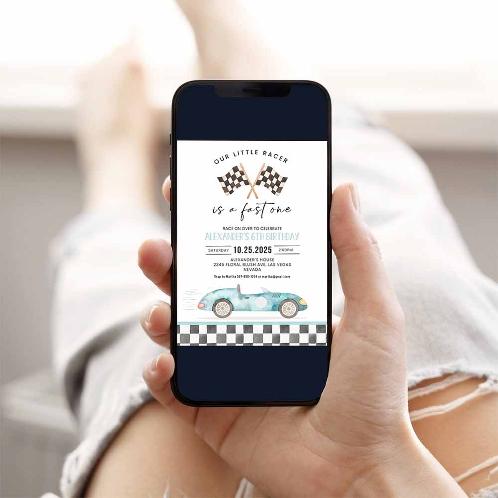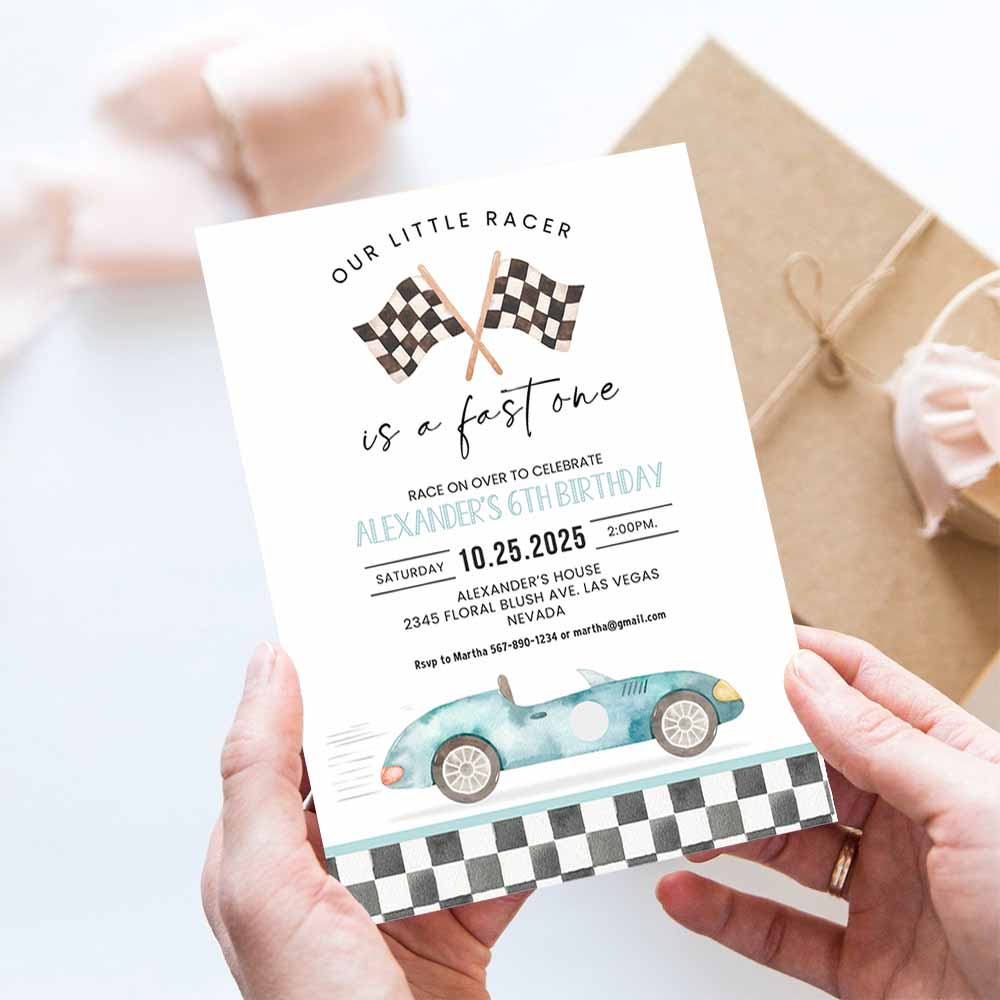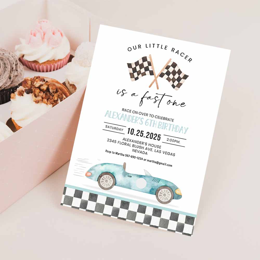 Fast One Birthday Invitation Race Car 1st Birthday Invite Racing Car Vintage Racecar