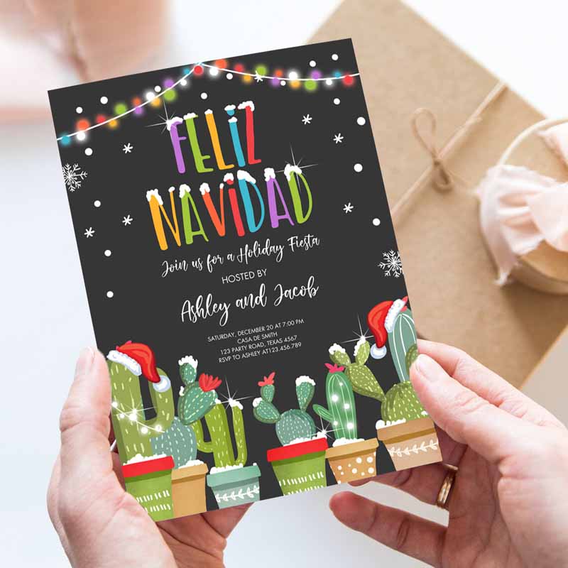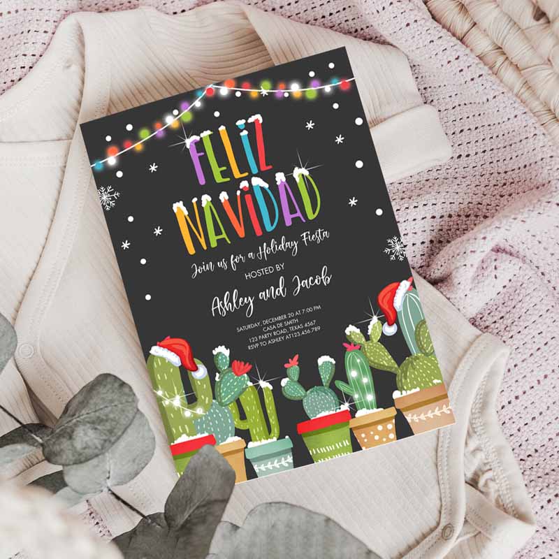 Feliz Navidad Christmas Fiesta Invitation, Cactus Mexican Holiday Fiestamas Party