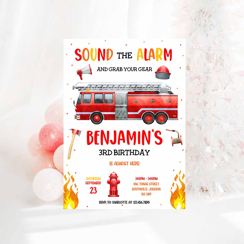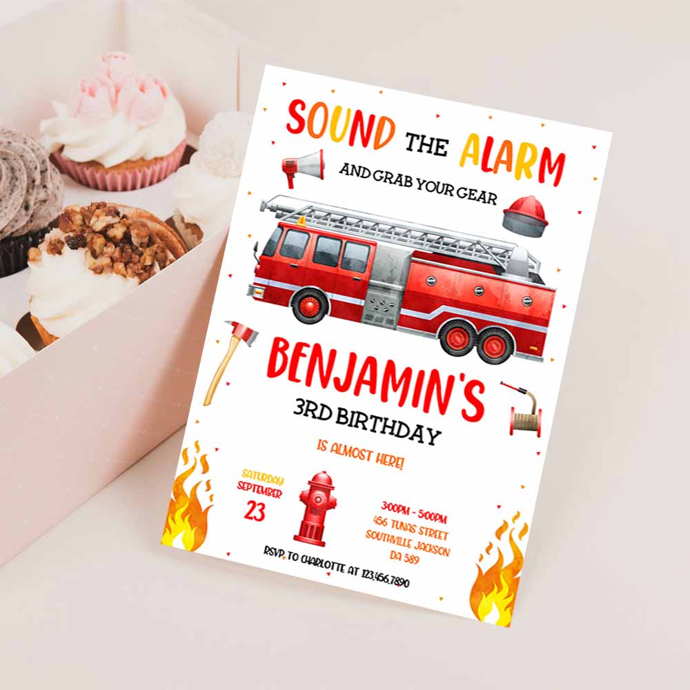 Firetruck Boy Birthday Invitation, Fire truck Birthday Invitation, Firetruck Invitation, Fire truck invitation