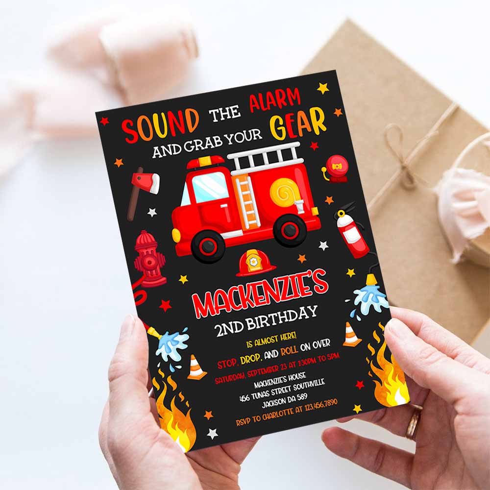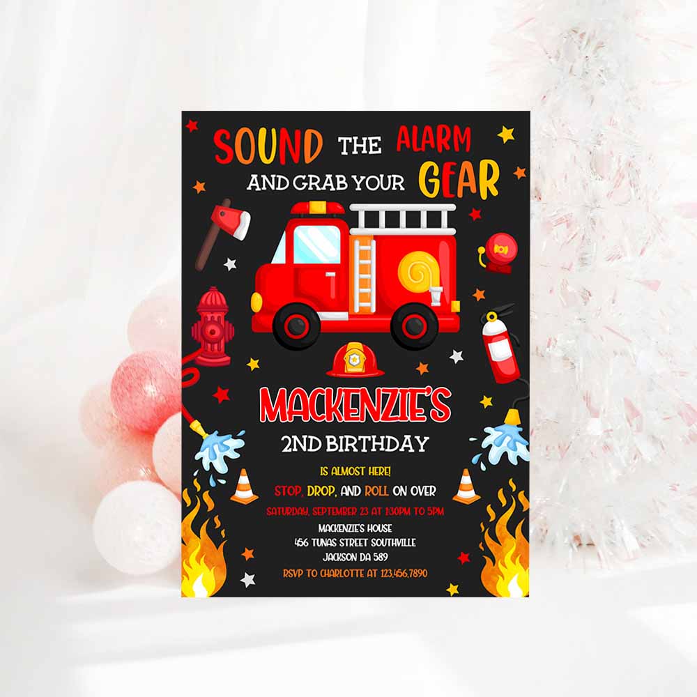 Firetruck Invitation, Fire Truck Birthday Invitation, Firetruck Invitation