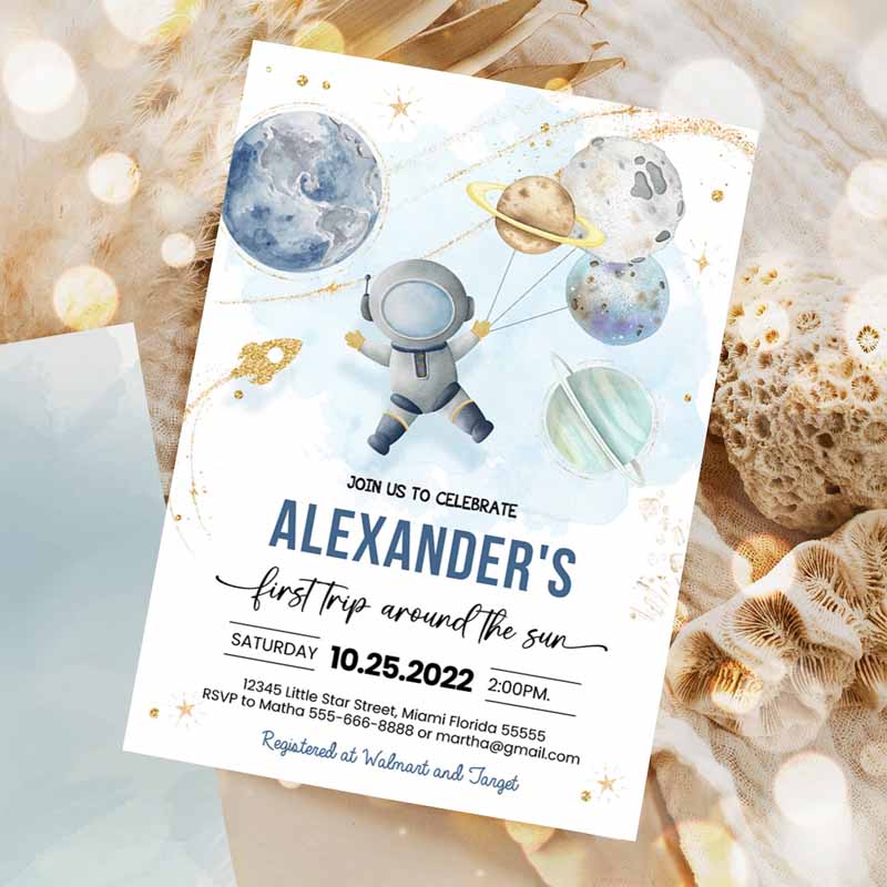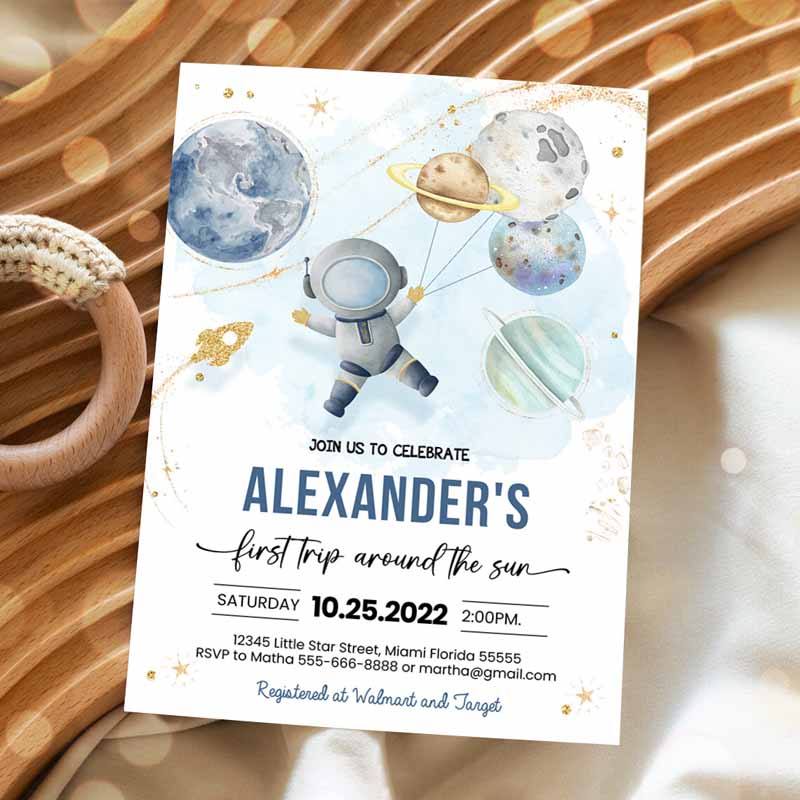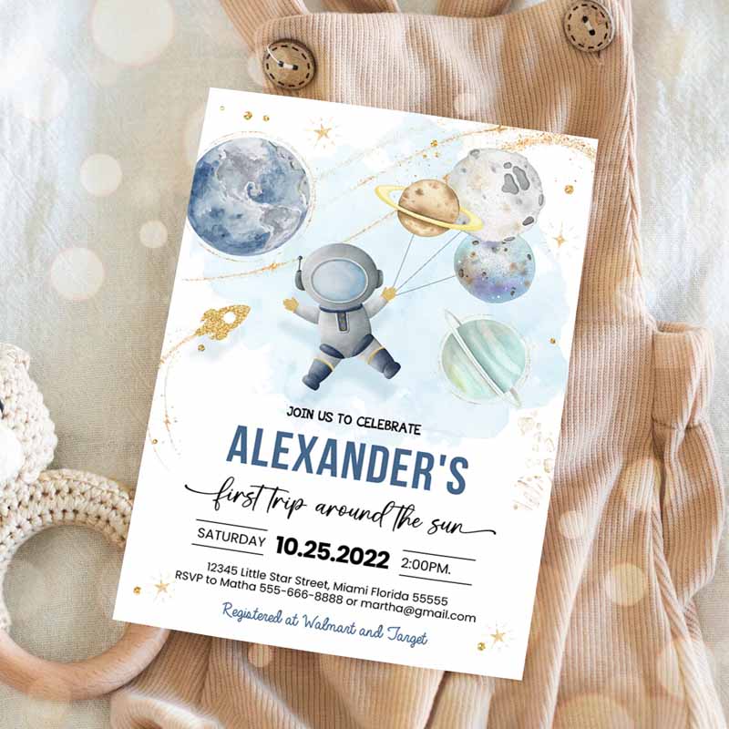 First Trip Arounde Sun Outer Space First Kids Birthday, Galaxy Blast Offs
