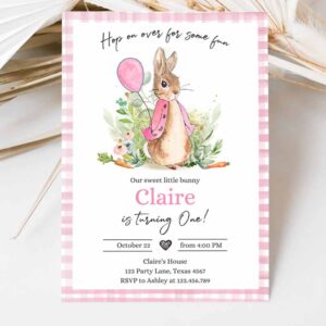 Flopsy Bunny Kids Birthday, Girl Pink Rustic Peter Rabbit Kids Birthday, Invite Hop on Over