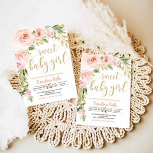 Floral Invitation, Blush Pink Floral Baby Shower Invitation, Baby Shower Invite Sweet Baby Girl