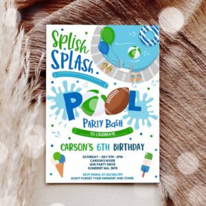 Football Pool Party Invitation, Sports Summer Pool Party, Sports Pool BBQ Kids Birthday Party, Pool Party