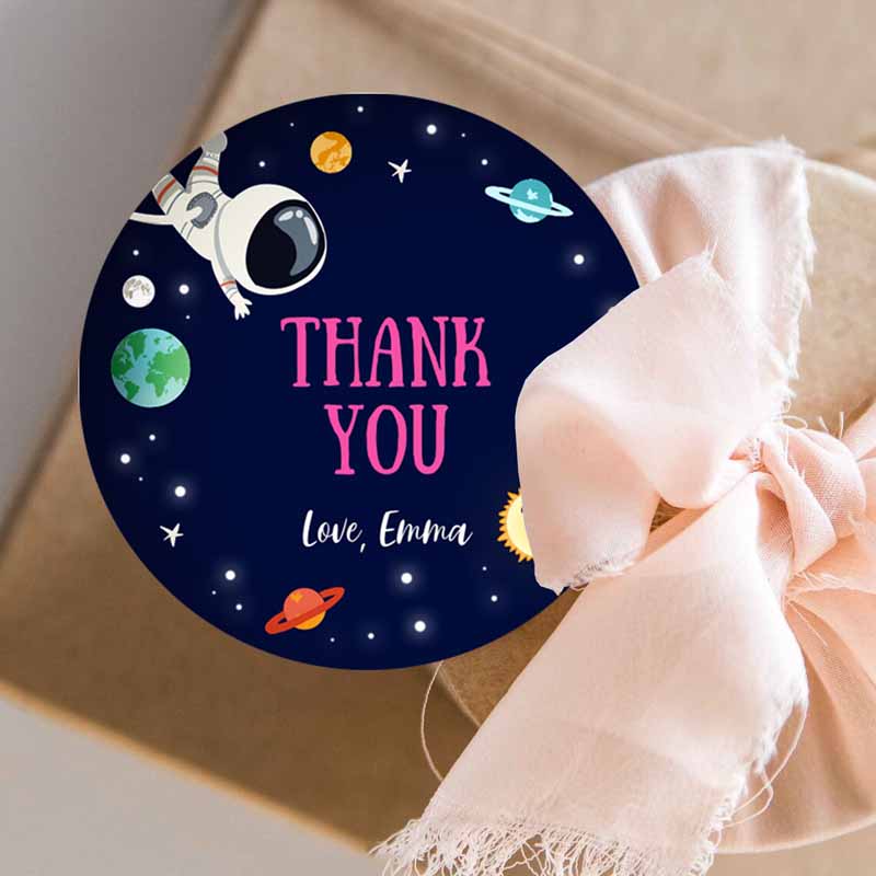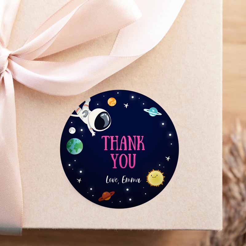Girl Space Astronaut Favor Tag, Kids Birthday Party, Outer Space Galaxy Planets Round Square
