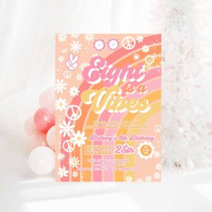 Groovy 8th Birthday Invitation Eight is a Vibe Daisy Rainbow Hippie Invite