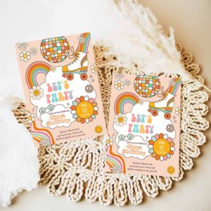 Groovy Kids Birthday Invitation, Lets Party, Boho Retro Flower Power ‘s Girl