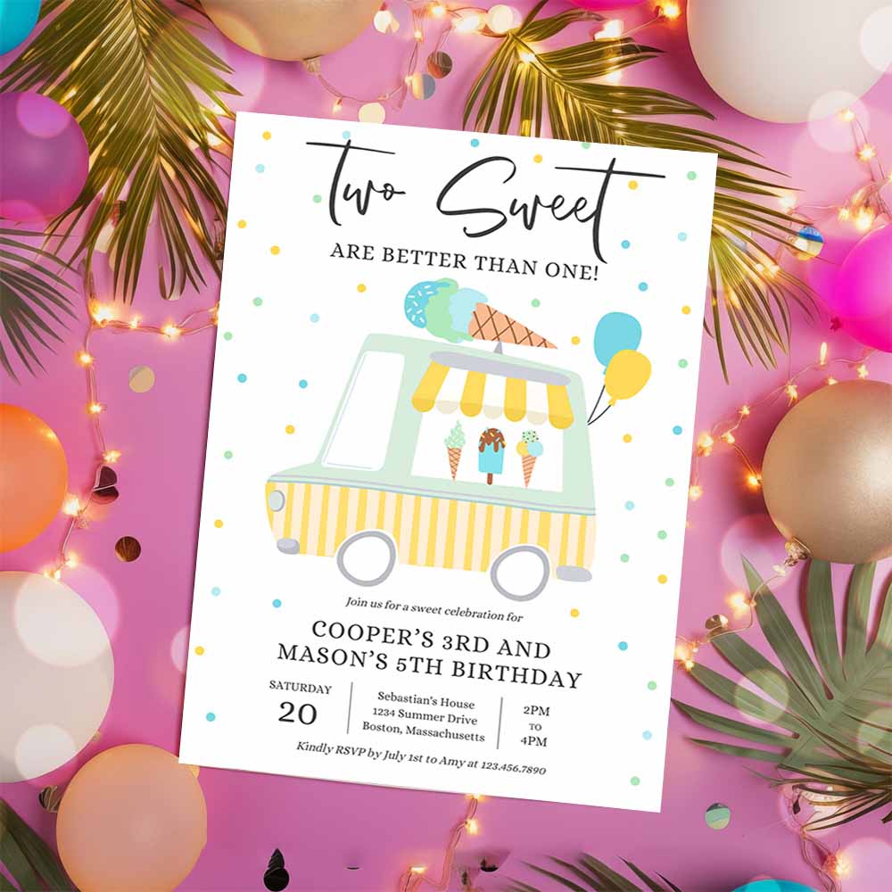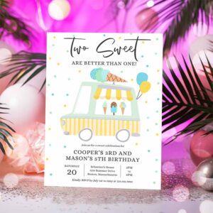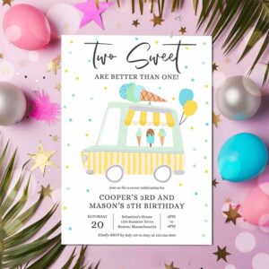Ice Cream Twin Birthday Invitation, Twin Ice Cream Truck Birthday Invitation, Two Scoops Are Better Than One