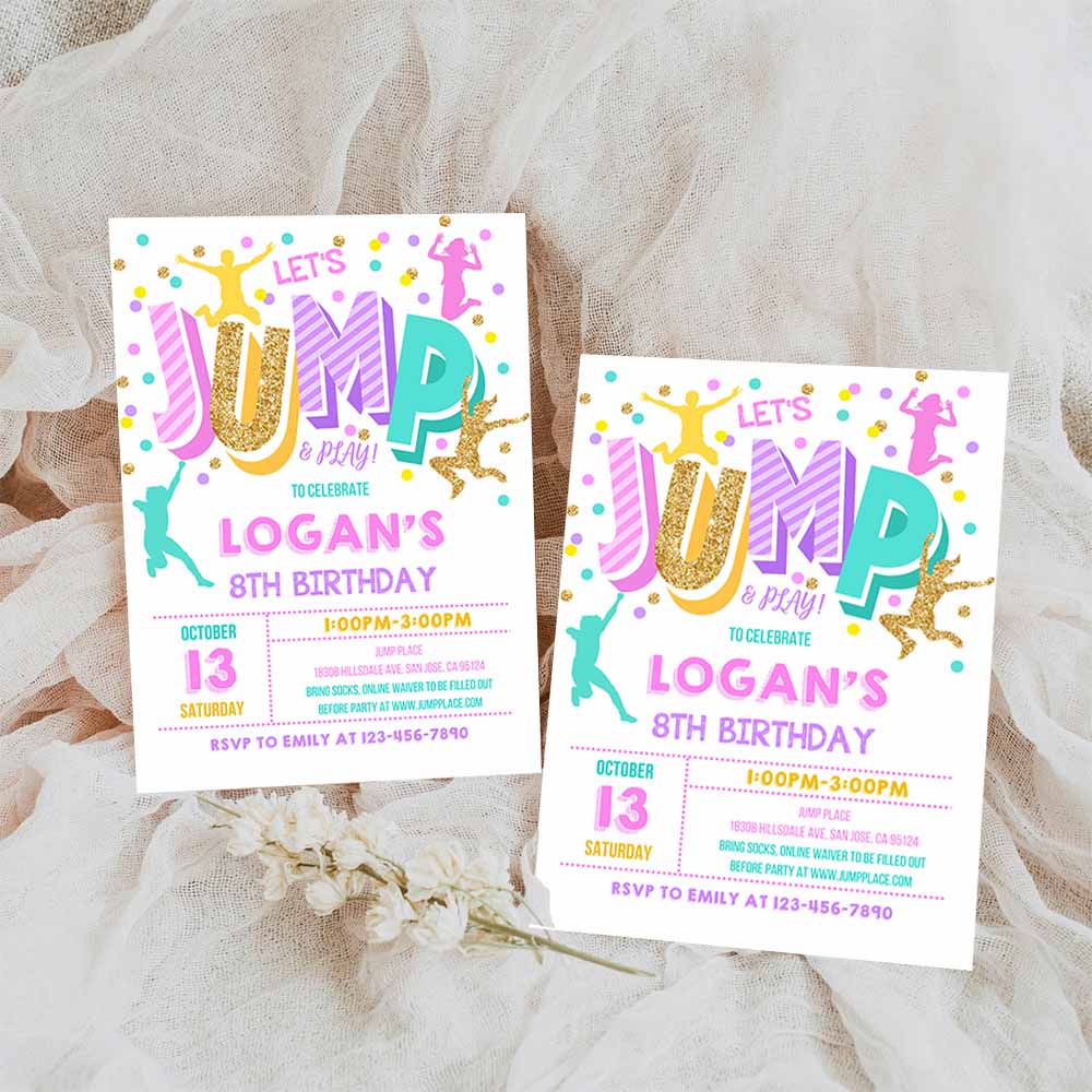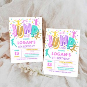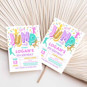 Jump Invitation, Jump Birthday Invite Trampoline Party, Bounce House Jump Party Let’s Jump Girl