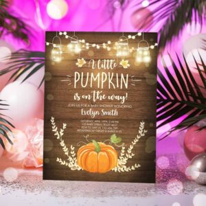 Little Pumpkin Baby Shower Invitation, Orange Pumpkin Patch Autumn Fall Rustic Boy Girl Sprinkle
