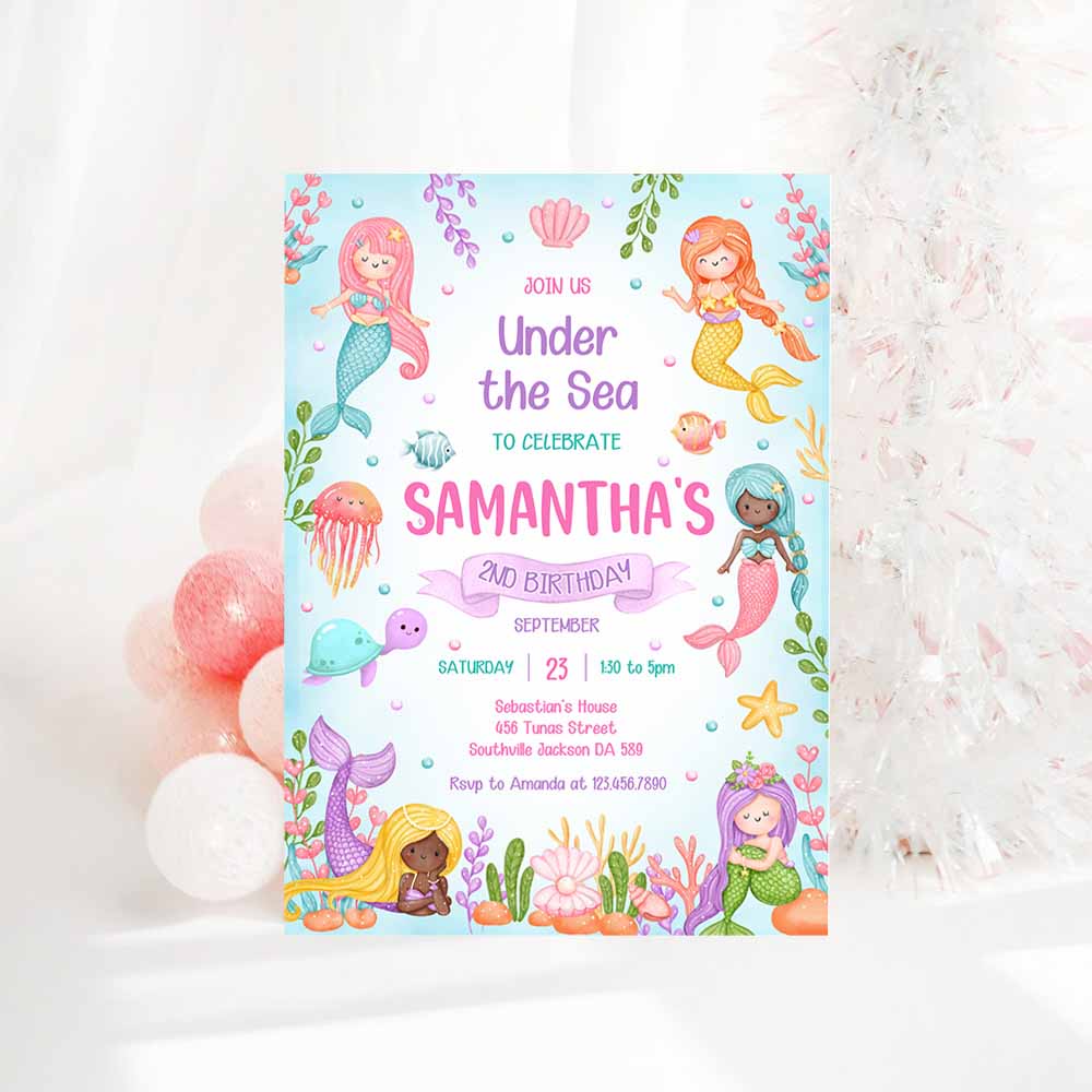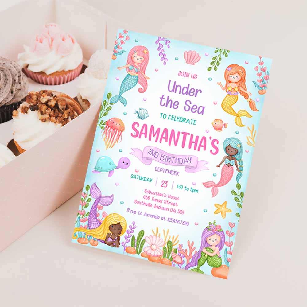 Mermaid Birthday Invitation, Under the Sea Birthday Invitation, Mermaid Party Invitation