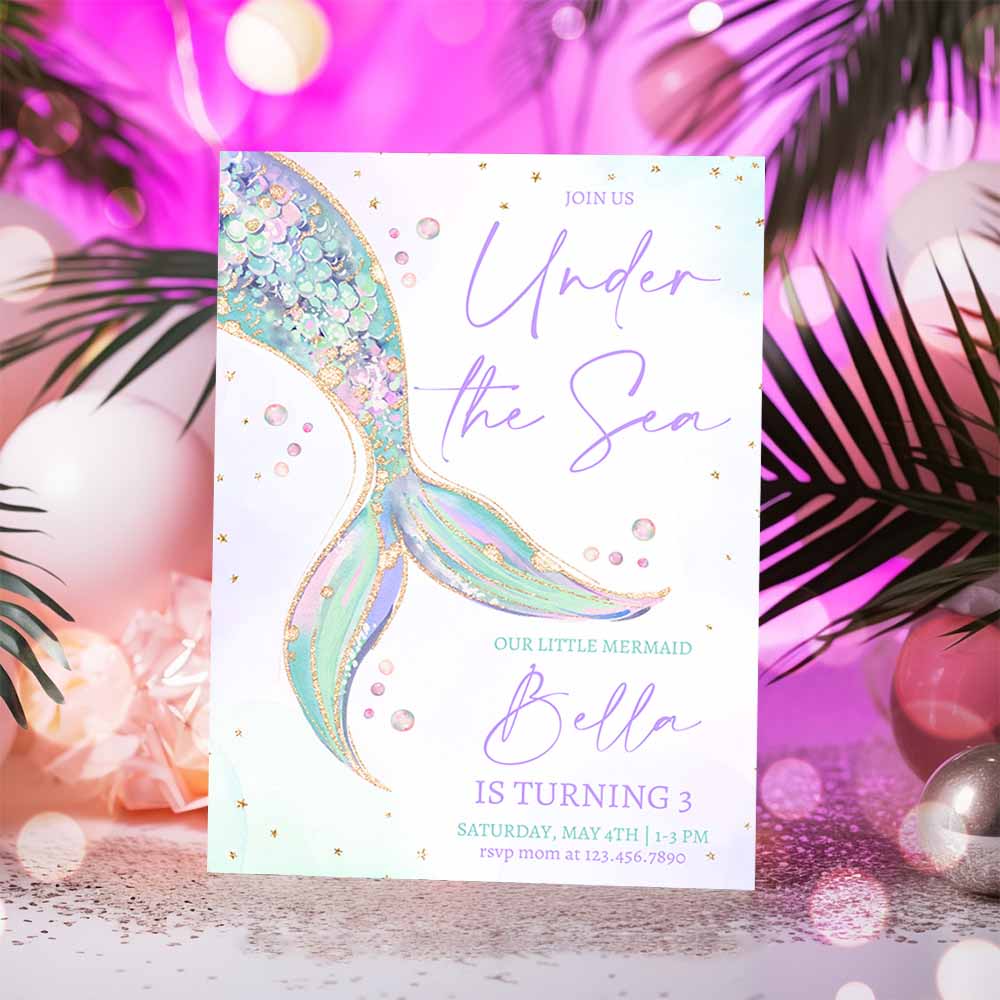 Mermaid Tail Birthday Invitation, Under the Sea Birthday Girl Invitation