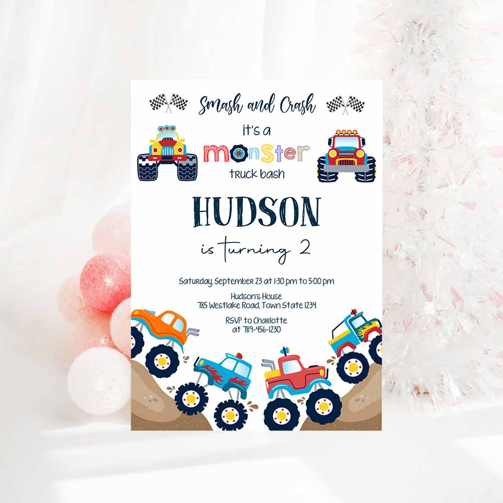 Monster Truck Birthday Invitation Template, Monster Truck Invitation, Monster Truck Invites