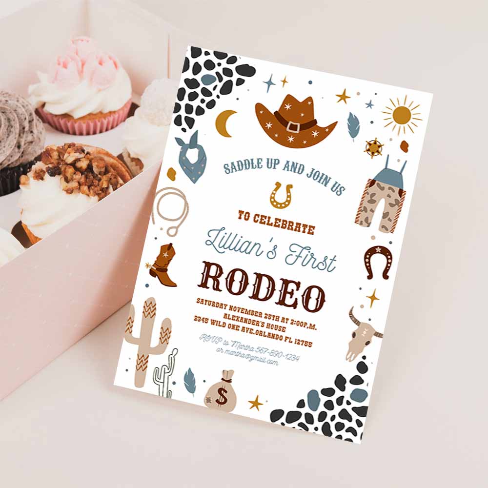 My First Rodeo Invitation Cowboy Birthday Invite Wild West invitation Ranch Southwestern