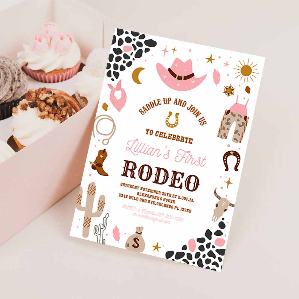 My First Rodeo Invitation Cowgirl Birthday Invite Wild West Cowgirl 1st Rodeo Southwestern Ranch