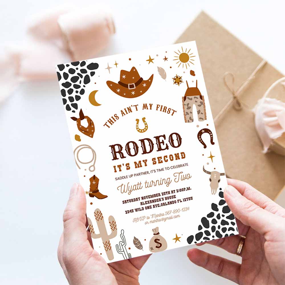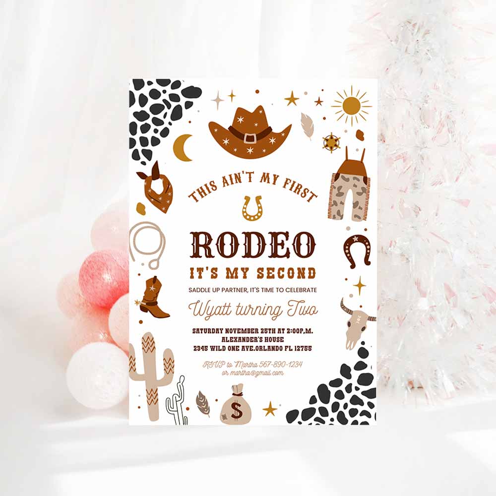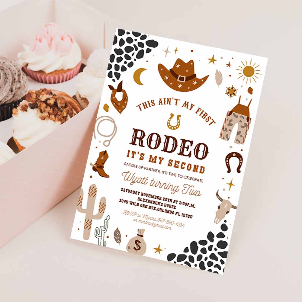 My Second Rodeo Invitation Cowboy Birthday Invite Brown Wild West invitation Ranch Southwestern