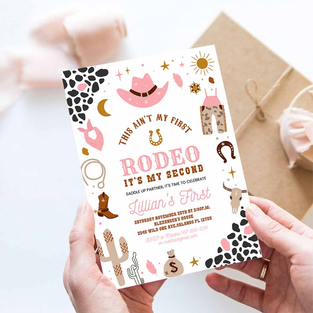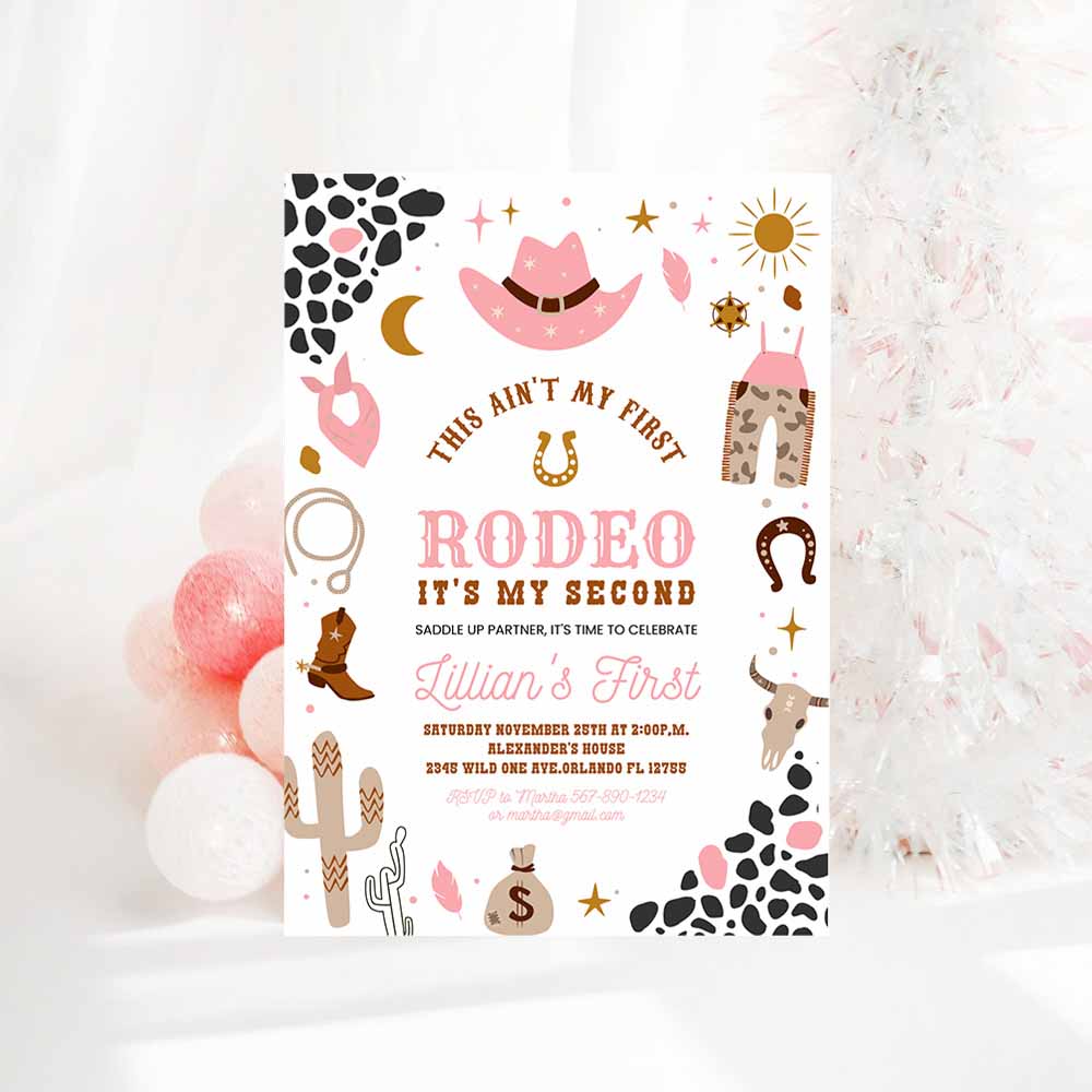 My Second Rodeo Invitation Cowgirl Birthday Invite Wild West Cowgirl 2nd Rodeo Southwestern Ranch