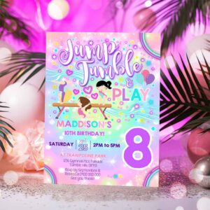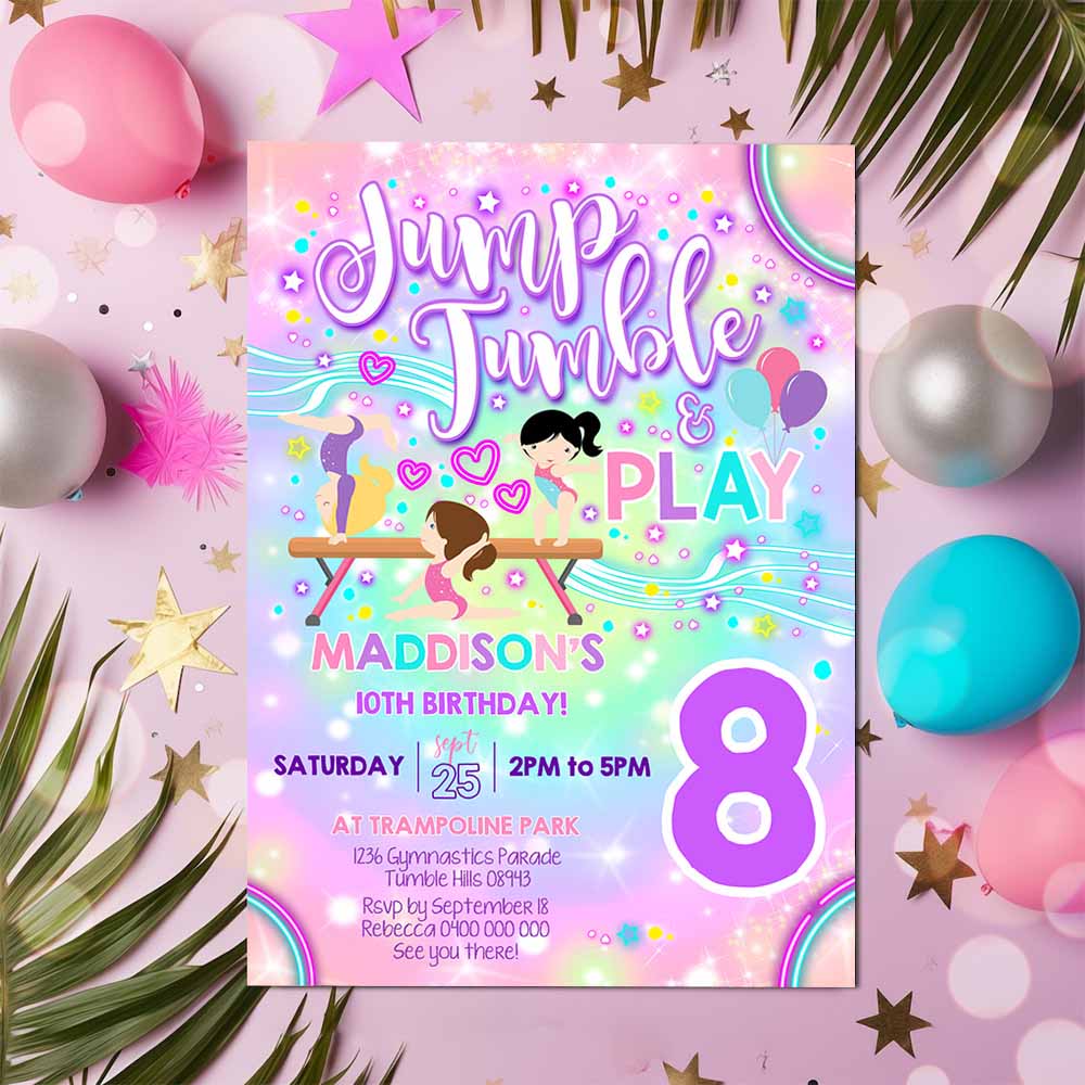NEON Gymnastics Invitation, Gymnastics Party Invitation