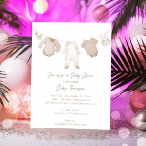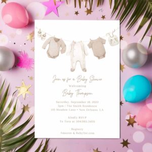 Neutral Baby Shower Invitation, Clothesline Baby Shower Invite